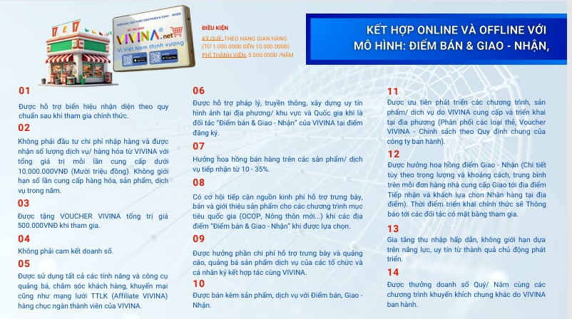 Hãy gia nhập nền tảng số quốc gia nền tảng số Quốc gia VIVINA ngay hôm nay để nâng cao hiệu quả kinh doanh, mở rộng thị trường quốc tế và phát triển bền vững cùng công nghệ số tiên tiến!